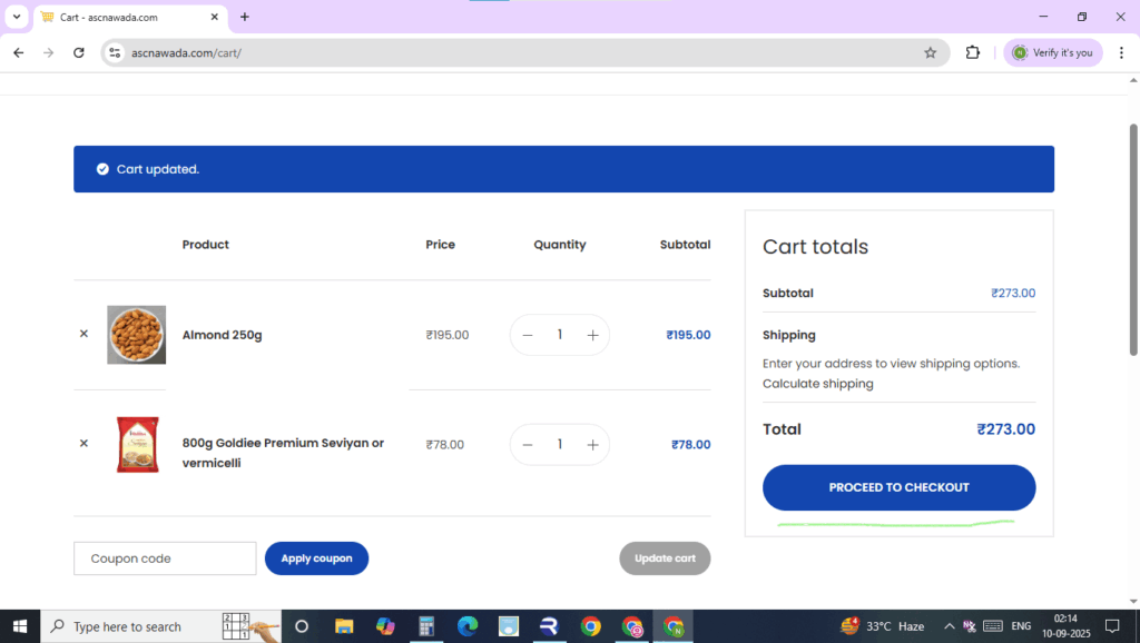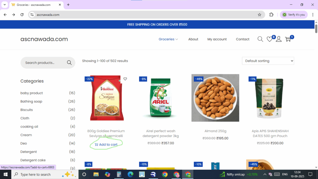 प्रोडक्ट को add to cart करे या प्रोडक्ट पे क्लिक कर के add to cart करे.