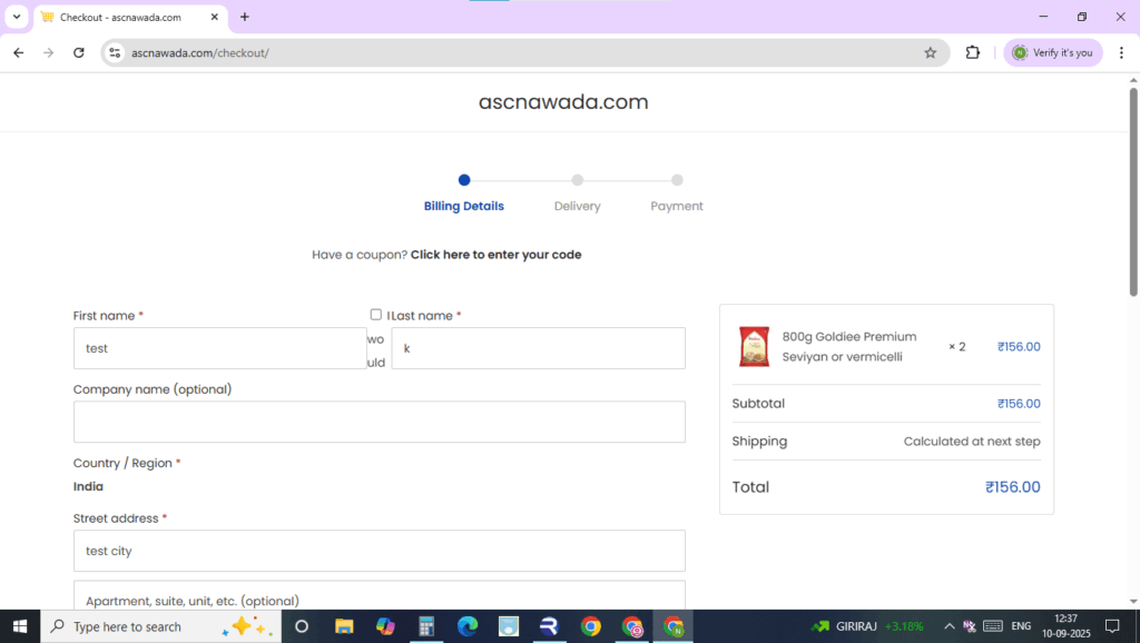 checkout page पे प्रोडक्ट्स डिटेल्स चेक करने अगला पेज बिलिंग डिटेल्स का आएगा वहां पता डाले और कंटिन्यू तो डिलीवरी पे क्लिक करे.