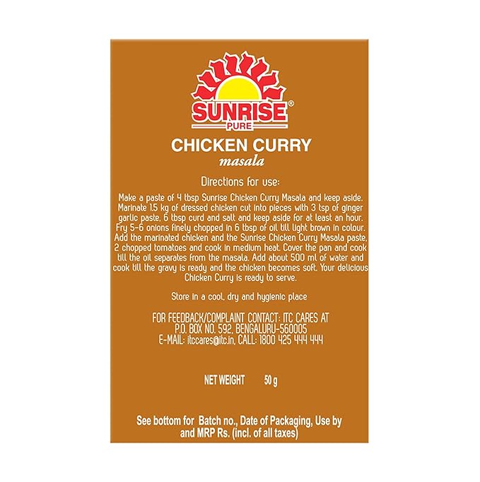 • SUNRISE PURE CHICKEN CURRY MASALA- Sunrise Pure Chicken Curry Masala is a flavorsome spice blend that brings alive the aroma and flavor of your dishes